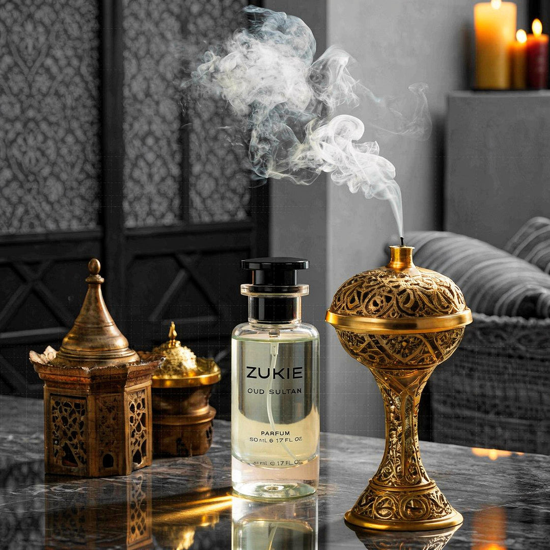 ZUKIE OUD SULTAN is a bold woody-ambery-floral perfume for men, created for powerful presence and long-lasting impact. Crafted in France and perfected for Indian conditions, this luxury fragrance blends spicy citrus with royal oud and leather accords. IFRA-compliant and skin-safe, OUD SULTAN is for men who prefer deep, smoky, commanding fragrances.