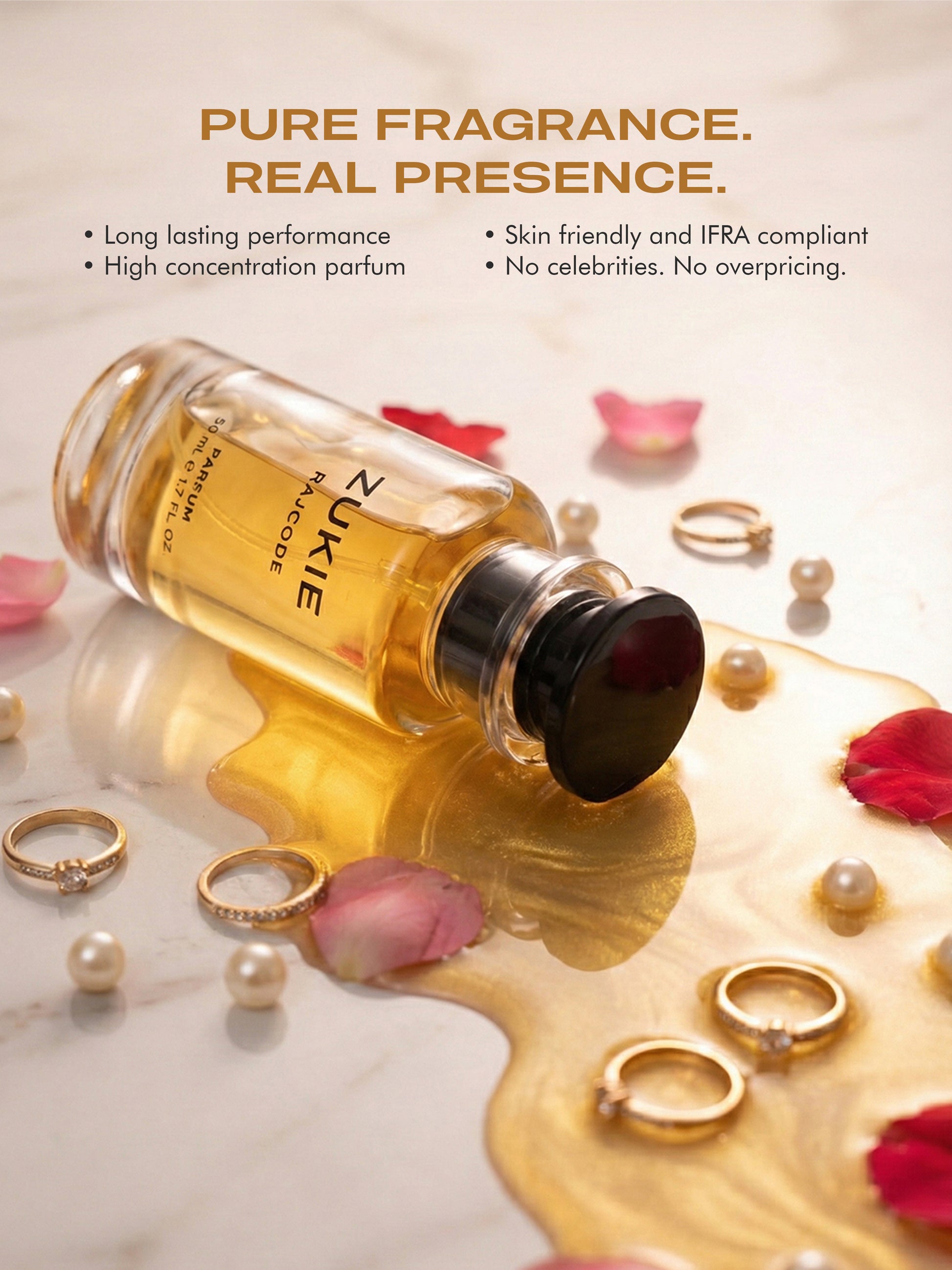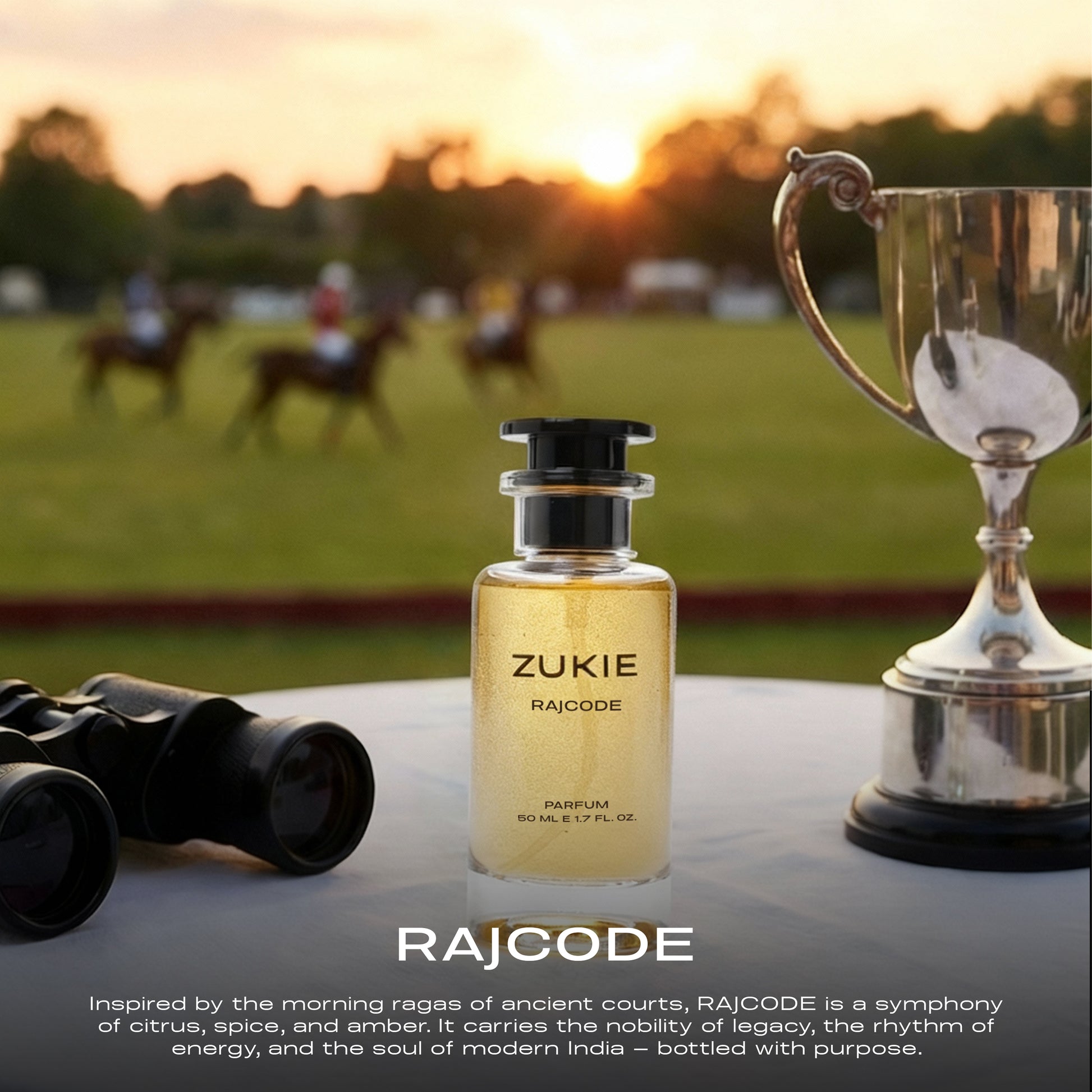 Inspired by the morning ragas of ancient courts, RAJCODE is a symphony of citrus, spice, and amber. It carries the nobility of legacy, the rhythm of energy, and the soul of modern India — bottled with purpose.